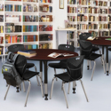 • 48 Round Adjustable Height Classroom Table Mahogany & Black Stack Chairs 4 - Pack - Regency Seating image - 1
