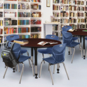 • Adjustable Height Round Classroom Table Mahogany & Navy Blue Chairs Set - Regency Seating image - 1