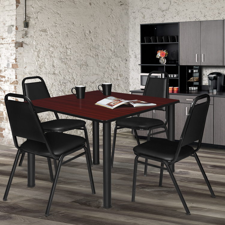 Kee 48" Square Breakroom Table- Mahogany/ Black