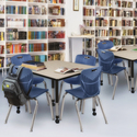 • Square Height Adjustable Mobile Classroom Tables & Navy Blue Stack Chairs Set - Regency Seating image - 1