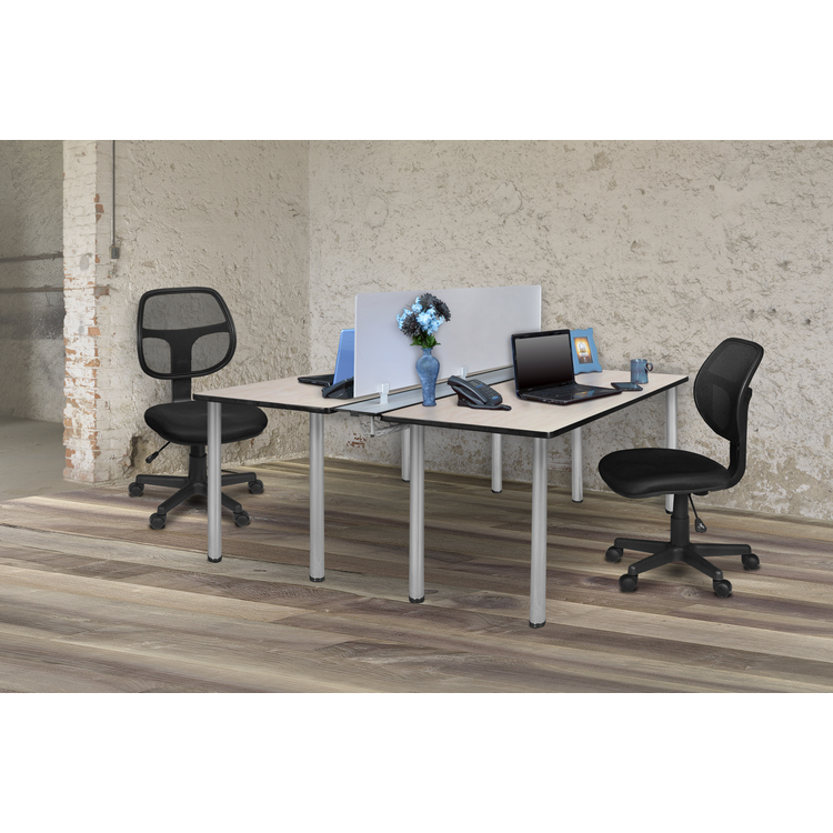 • Kee 66" x 24" Benching System with Privacy Divider- Maple/ Chrome image - 1