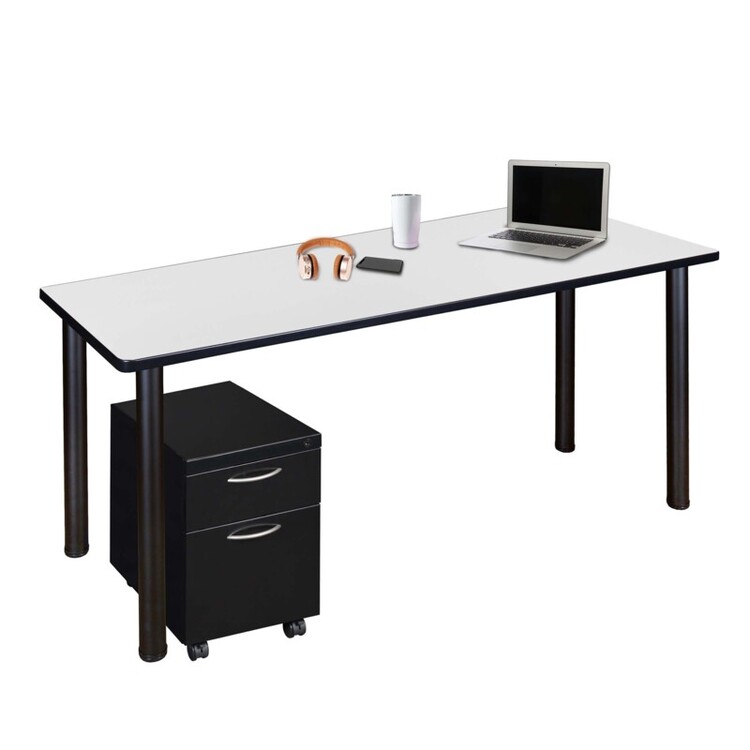 • Regency Kee 66 x 24 in. Mobile Desk with Storage- White Top, Black Legs image - 1