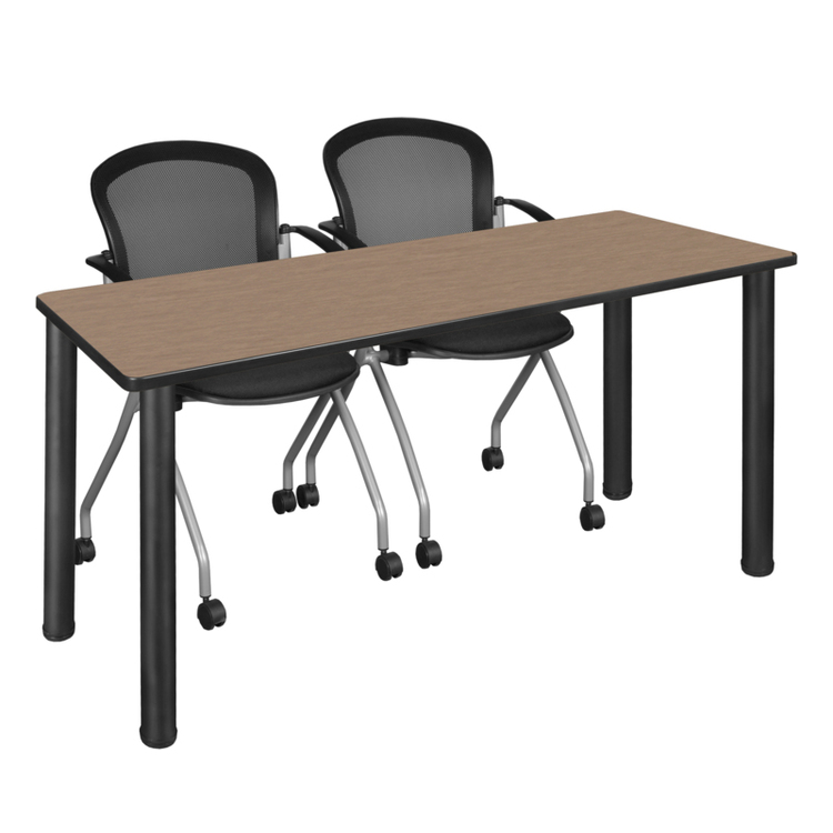 • Regency Kee 66 x 24 in. Training Table- Noble Oak Top, Black Legs & 2 Cadence Nesting Chairs image - 1