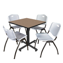 • Regency Kobe 30" Square Breakroom Table- Noble Oak & 4 'M' Stack Chairs- Grey image - 1