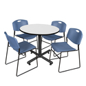 • Regency Kobe 36" Round Breakroom Table- White & 4 Zeng Stack Chairs- Blue image - 1
