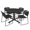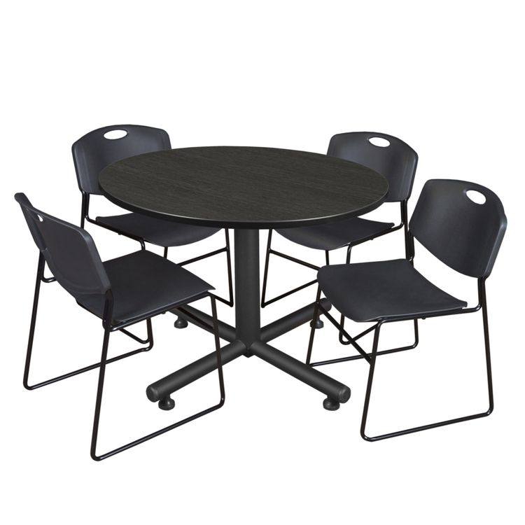 • Regency Kobe 48" Round Breakroom Table- Ash Grey & 4 Zeng Stack Chairs- Black image - 1