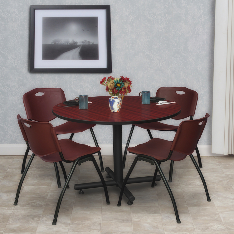 • 48 Round Mahogany Meeting Table Burgundy Stack Chairs Set - Regency Seating image - 1