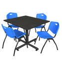 • Regency Kobe 48" Square Breakroom Table- Ash Grey & 4 'M' Stack Chairs- Blue image - 1