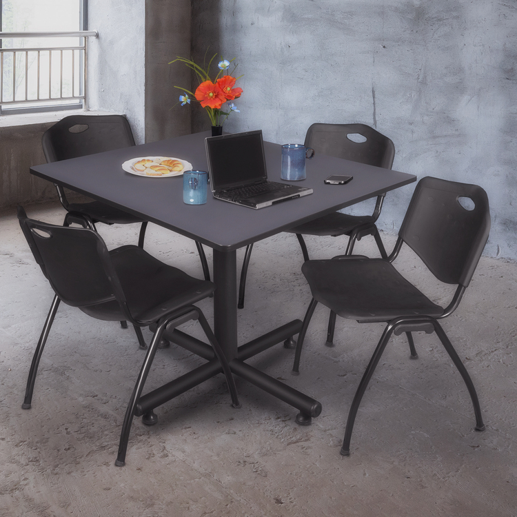 • 48 Square Office Table & 4 Stack Chairs Set - Grey & Black - Regency Seating image - 1