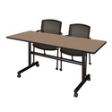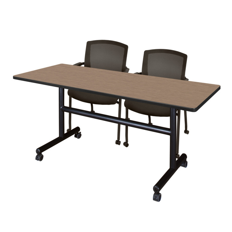 • Regency Kobe 60 x 24 in. Flip-Top Training Nesting Table- Noble Oak & 2 Knight Mesh Chairs image - 1