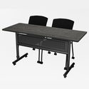 Regency Kobe 60 x 24 in. Flip-Top Training Nesting Table w/ Modesty Panel- Ash Grey & 2 Knight Mesh Chairs