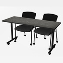 • Regency Kobe 60 x 24 in. Mobile T-Base Training Seminar Table- Ash Grey, 2 Knight Mesh Chairs image - 1