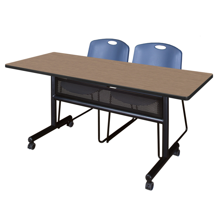 • Regency Kobe 60 x 30 in. Flip-Top Privacy Nesting Table- Noble Oak, 2 Zeng Stack Chairs- Blue image - 1