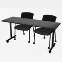 Regency Kobe 66 x 24 in. Mobile T-Base Training Seminar Table- Ash Grey, 2 Knight Mesh Chairs