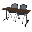 • Regency Kobe 72 x 24 in. T-Base Training Seminar Table- Neo Walnut, 2 Cadence Nesting Chairs image - 1