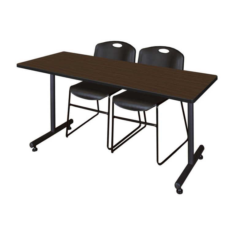 Regency Kobe 72 x 24 in. T-Base Training Seminar Table- Neo Walnut, 2 Zeng Stack Chairs- Black