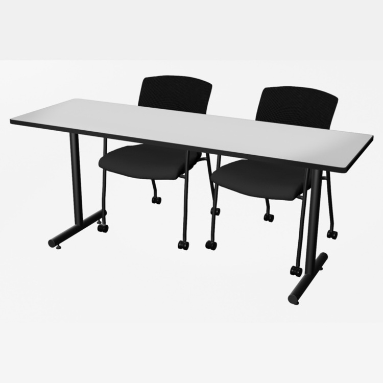 • Regency Kobe 72 x 24 in. T-Base Training Seminar Table- White, 2 Knight Mesh Chairs image - 1