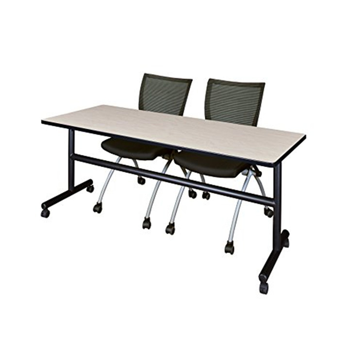 • 72 Flip Top Mobile Training Table Maple Wood & 2 Black Apprentice Chairs - Regency Seating image - 1