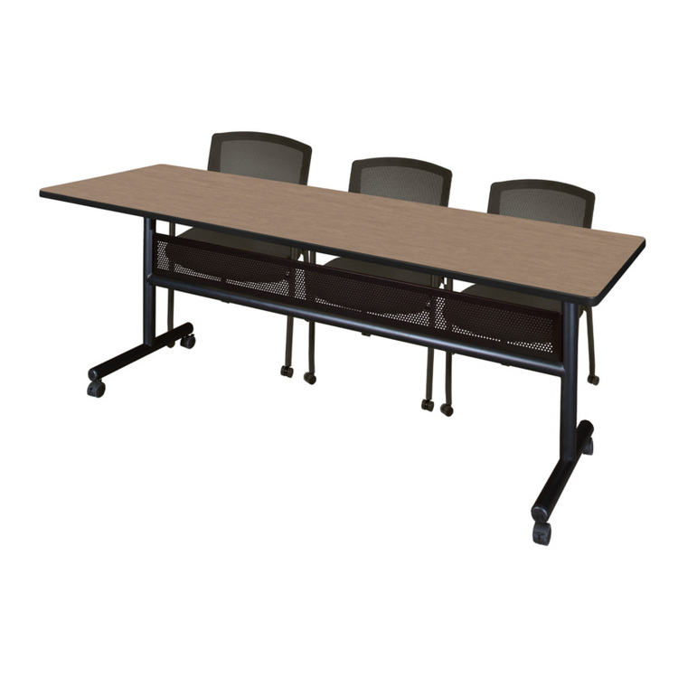 • Regency Kobe 84 x 24 in. Flip-Top Training Nesting Table w/ Modesty Panel- Noble Oak & 2 Knight Mesh Chairs image - 1