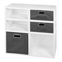 • Regency Niche Cubo Storage Set- 2 Full Cubes/4 Half Cubes with Foldable Storage Bins- White Wood Grain/Grey image - 1