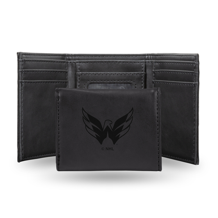 • Rico Industries NHL Hockey Washington Capitals Black Laser Engraved Faux Leather Trifold image - 1