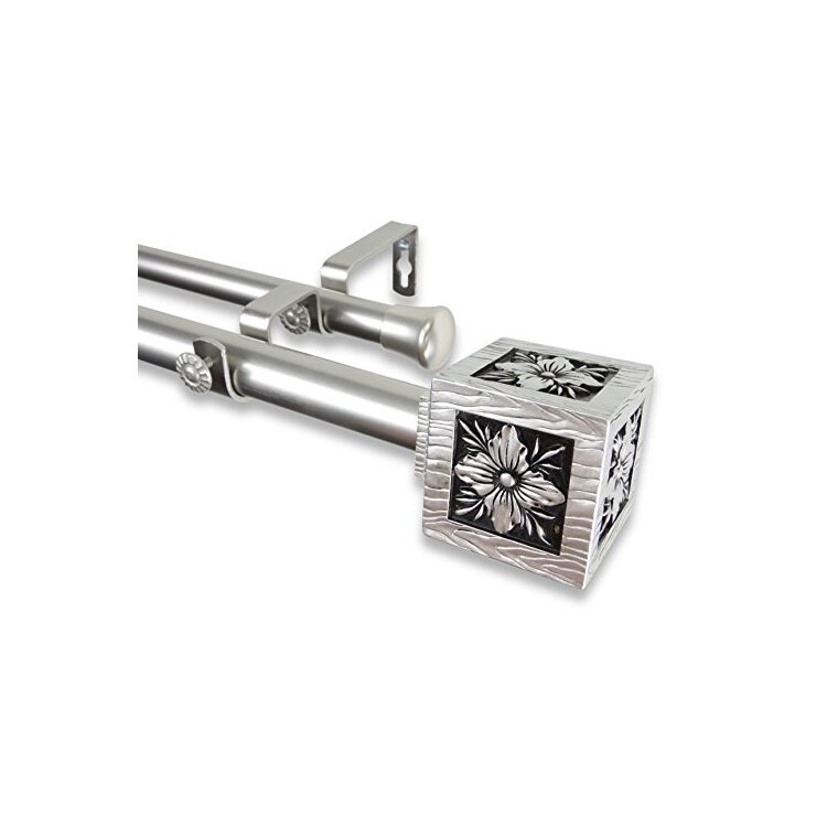 Ophelia 1 inch Double Curtain Rod 66-120 Inch - Satin Nickel