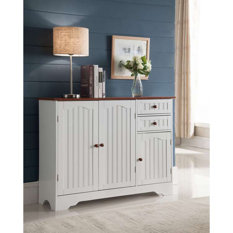 • Room Designs White Kitchen Cabinet - Walnut Top Contemporary Design image - 1