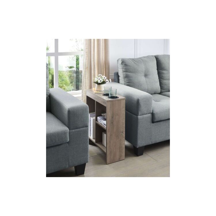 • Room Designs Walnut Side Table with Shelves & Cup Holders - Modern Design image - 1