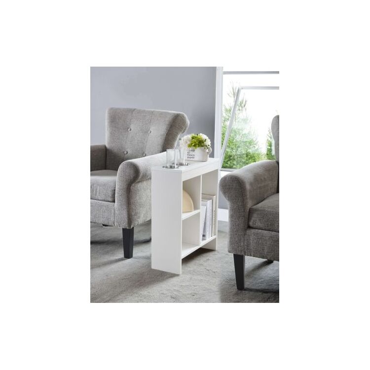 • Room Designs White Side Table with Shelves & Cup Holders - Modern Design image - 1