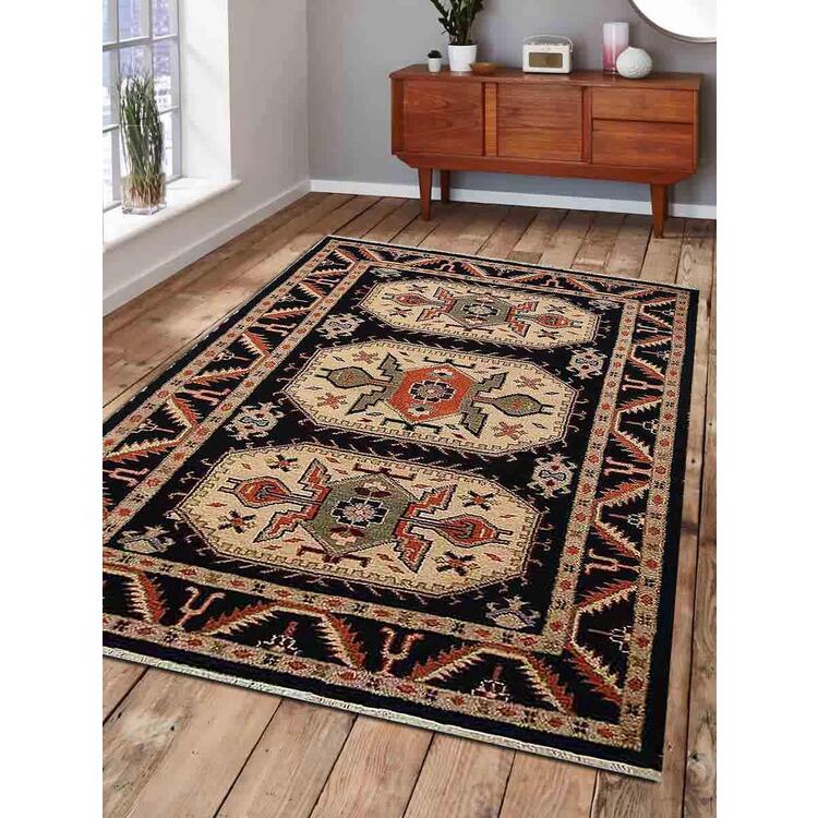 Rugsotic Carpets Hand Knotted Afghan Woolen with Silk 9' x 12' Kazak Area Rug Black Cream AF0109