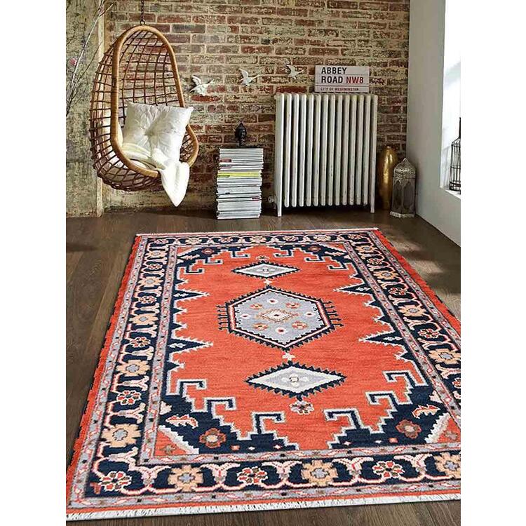 • Rugsotic Carpets Hand Knotted Afghan Woolen with Silk 9' x 12' Kazak Area Rug Dark Orange Navy AF0112 image - 1