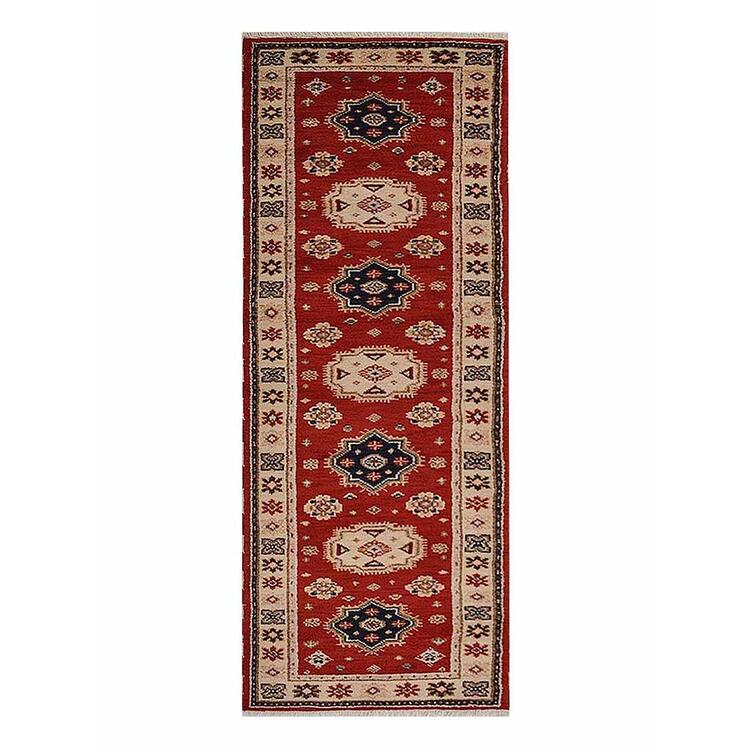 Rugsotic Carpets Hand Knotted Afghan Woolen with Silk 9' x 12' Kazak Area Rug Red Cream AF0104