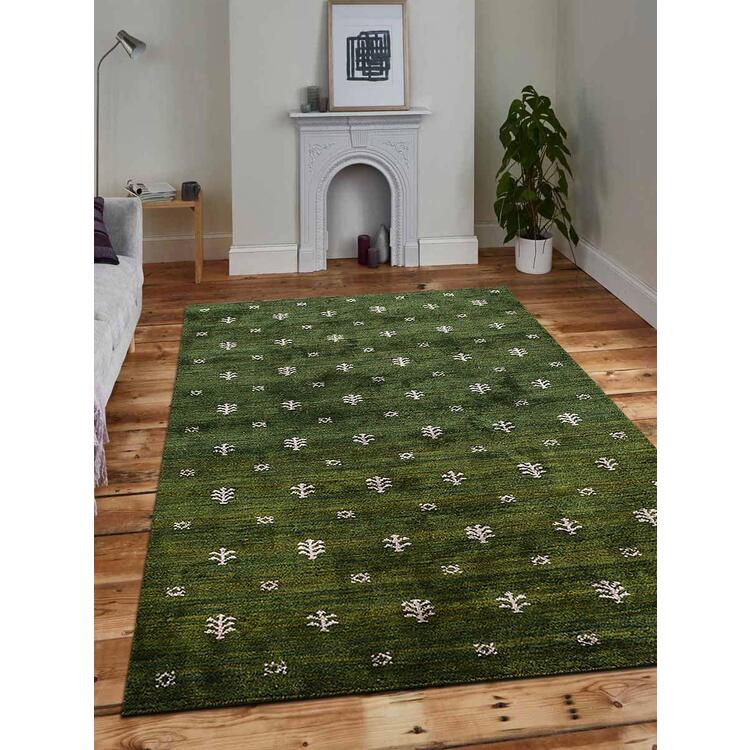 • Rugsotic Carpets Hand Knotted Gabbeh Silk 5'x8' Area Rug Contemporary Green Beige OJLS0501 image - 1