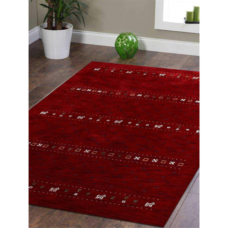 • Rugsotic Carpets Hand Knotted Gabbeh Wool 6'x9' Area Rug Contemporary Red OJL00585 image - 1