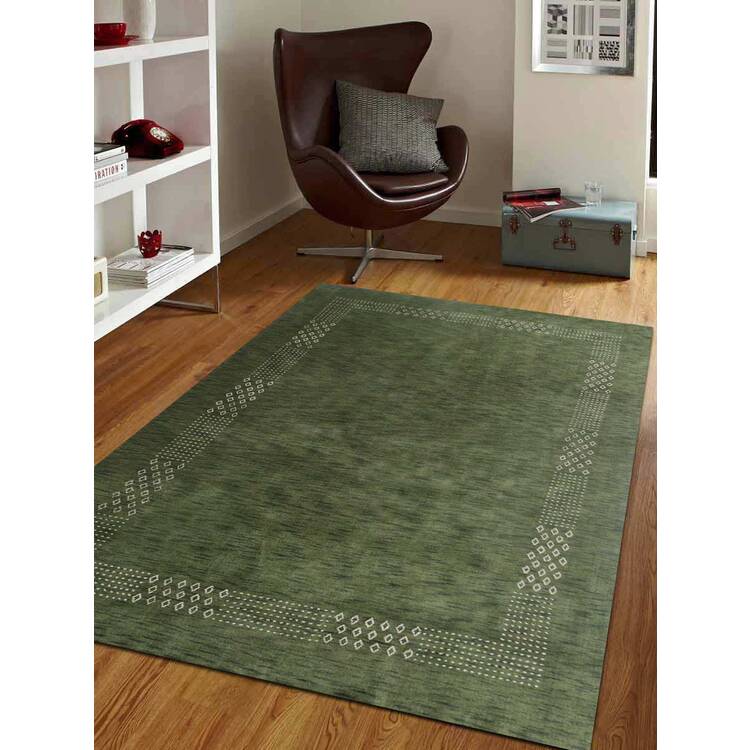 • Rugsotic Carpets Hand Knotted Gabbeh Wool 8'x11' Area Rug Contemporary Green OJL00530 image - 1