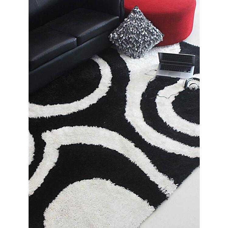 • Rugsotic Carpets Hand Tufted Polyester 9' x 12' Contemporary Area Rug Black White K00077 image - 1
