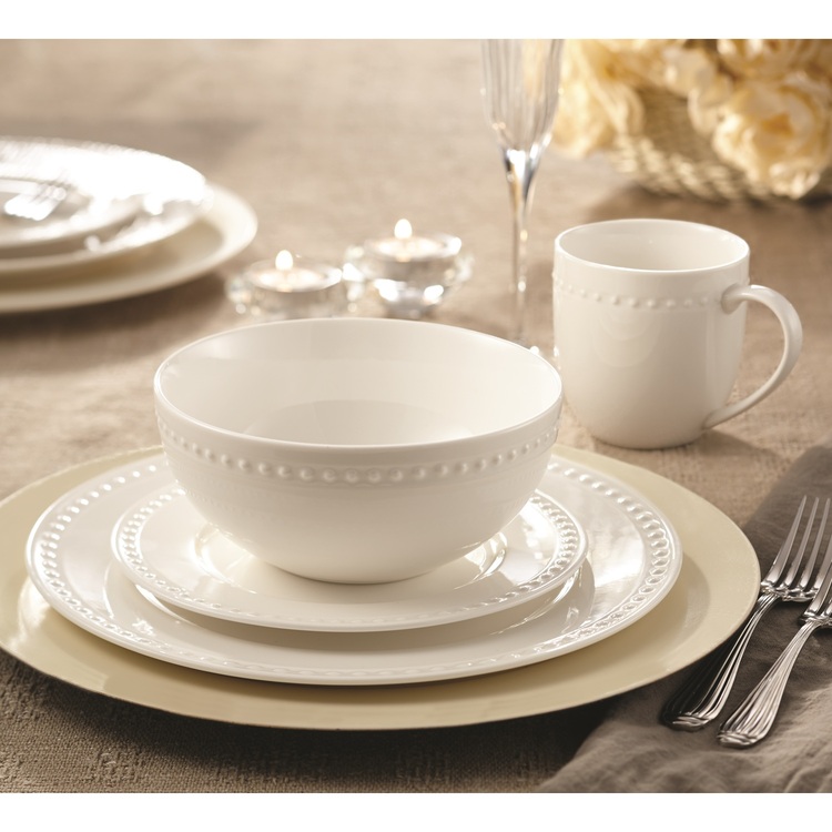 S & Co. Dinnerset 16PC Embossed Round Rim Pearl