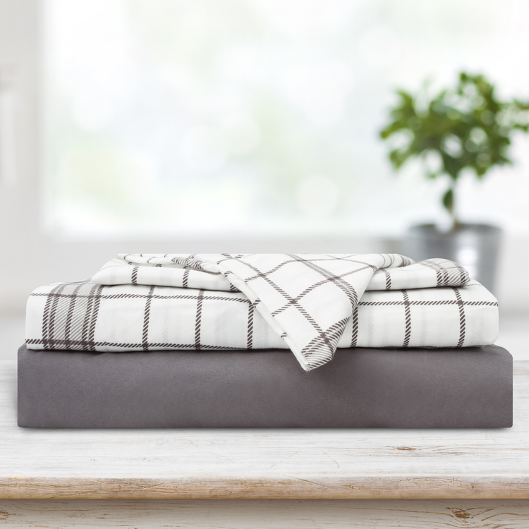• Sheet Set 4PC K Microfiber Plaid Grey image - 1