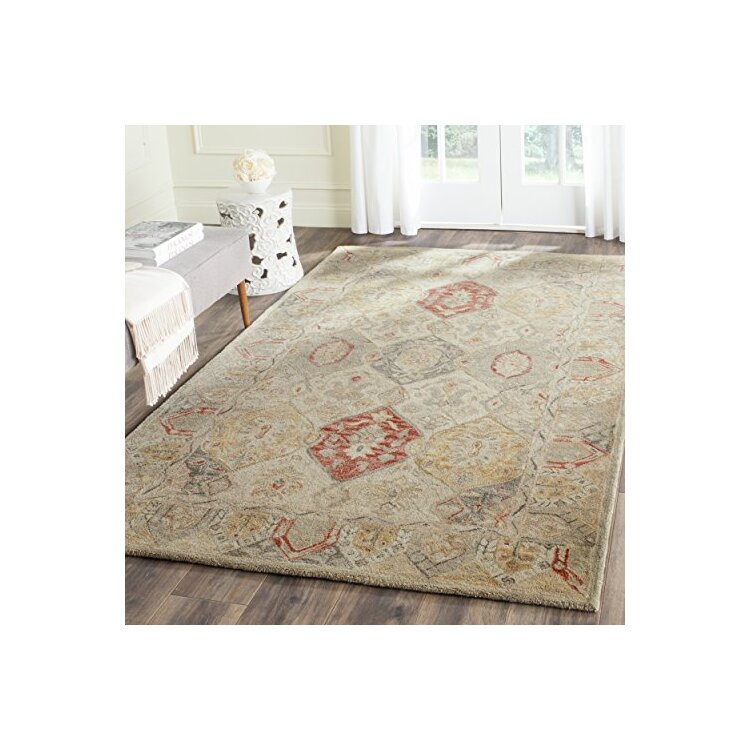 Traditional Wool Pile Rug 2x3 Beige Multi Hand Tufted Cotton Backing 100% Wool - Safavieh