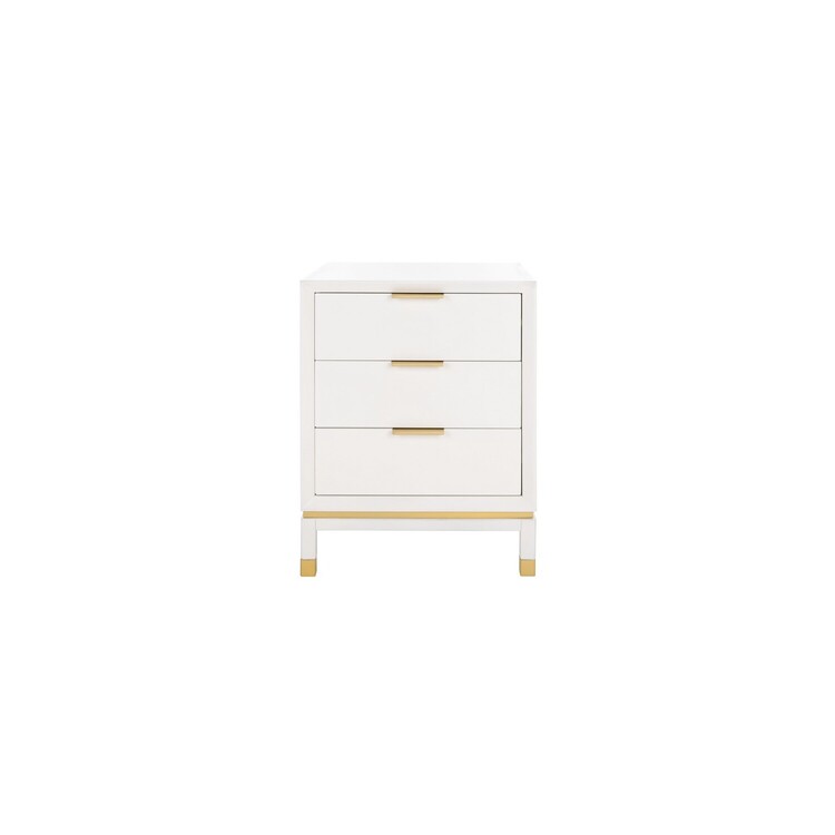 • White 3 Drawer Accent Table Wood Frame Gold Capped Legs - Safavieh image - 1