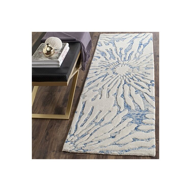 Dark Blue/Ivory Round Hand Tufted Wool Pile Rug 5' x 5'' Cotton Backing - Safavieh