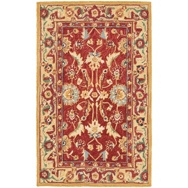 Virgin Wool Hand Hooked Rectangle Rug Red/Ivory Medium 2'6x4' - Safavieh
