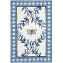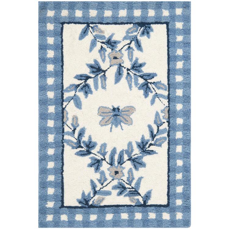Virgin Wool Pile Area Rug Ivory/Green Hand Hooked Cotton Backing 1x2.5ft - Safavieh