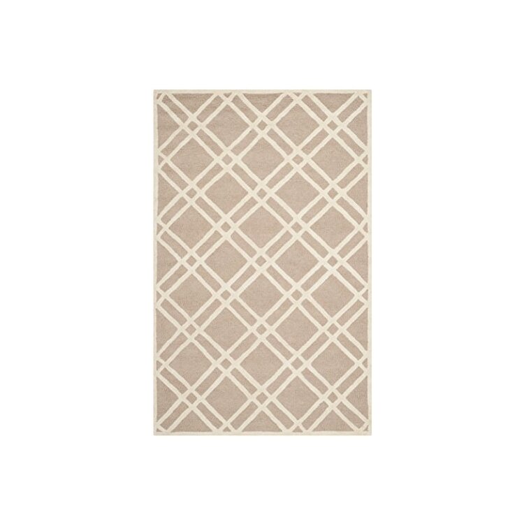 Contemporary Beige/Ivory Wool Pile Rug 6x4 Small Rectangular