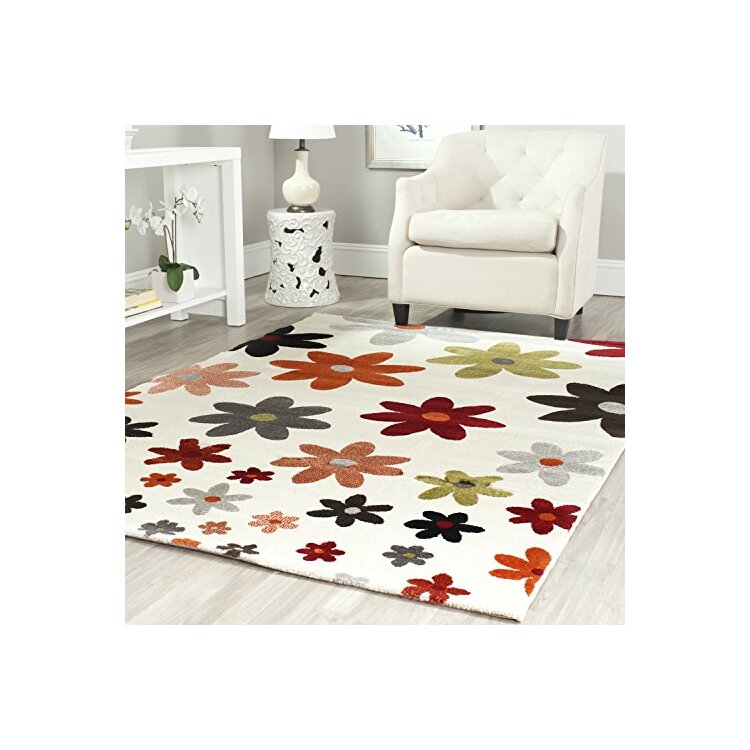 Contemporary Ivory/Multi Color Small Rectangle Rug 7'7x5'3