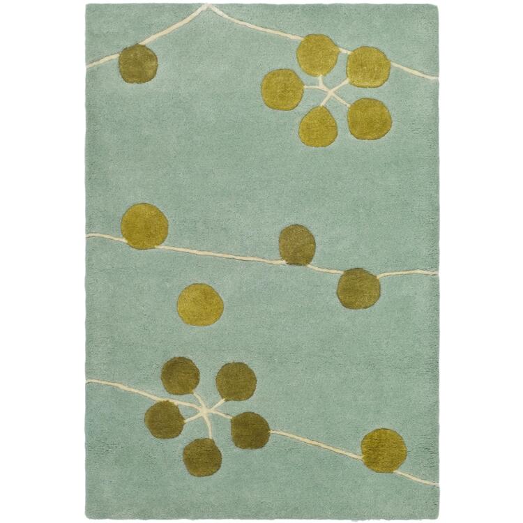 • Light Blue Gold Wool Pile Rectangular Rug 5x3'6 Large Rectangle 9'6L x 7'6W - Safavieh image - 1