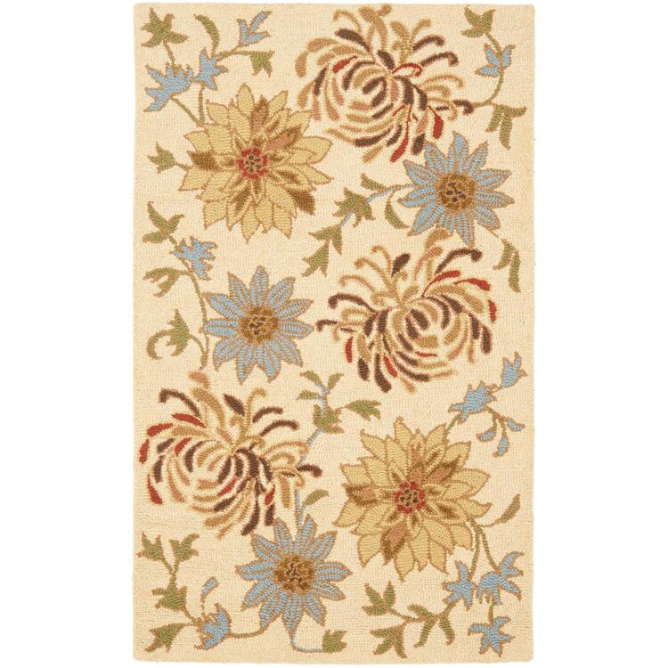 Country & Floral Rug - Blossom Wool Pile -Beige/Multi