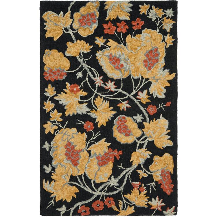 • Country & Floral Rug - Blossom Wool Pile -Black/Multi image - 1