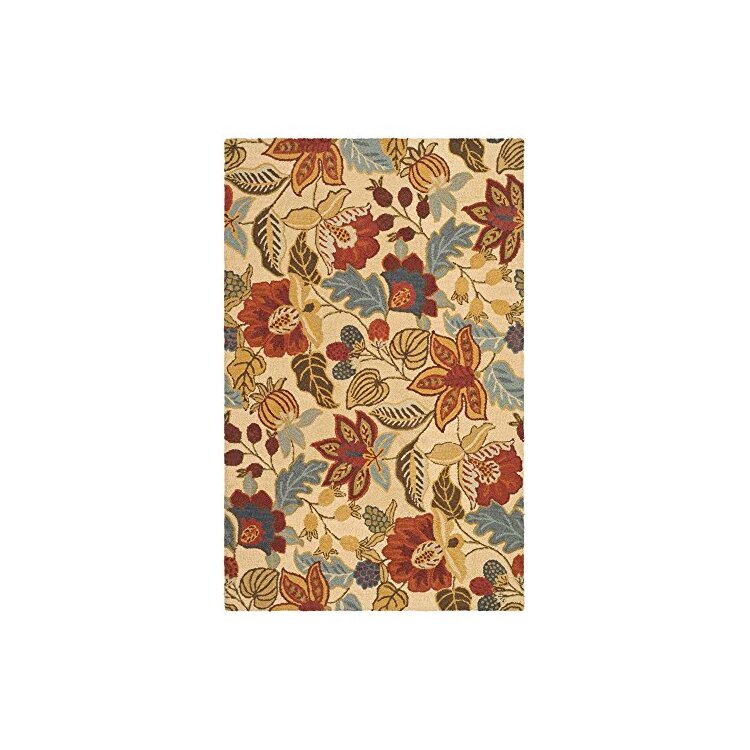 Beige Multi Floral Small Country Rug 5'L x 3'W