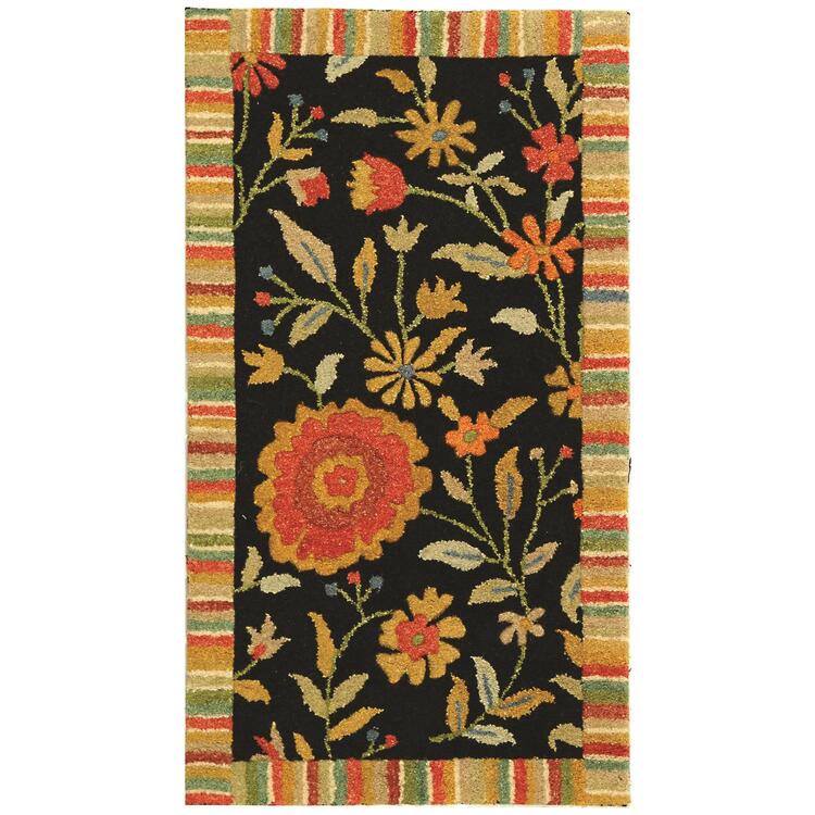 Black Wool Pile Country Floral Large Rectangle Rug 13x9' - Safavieh